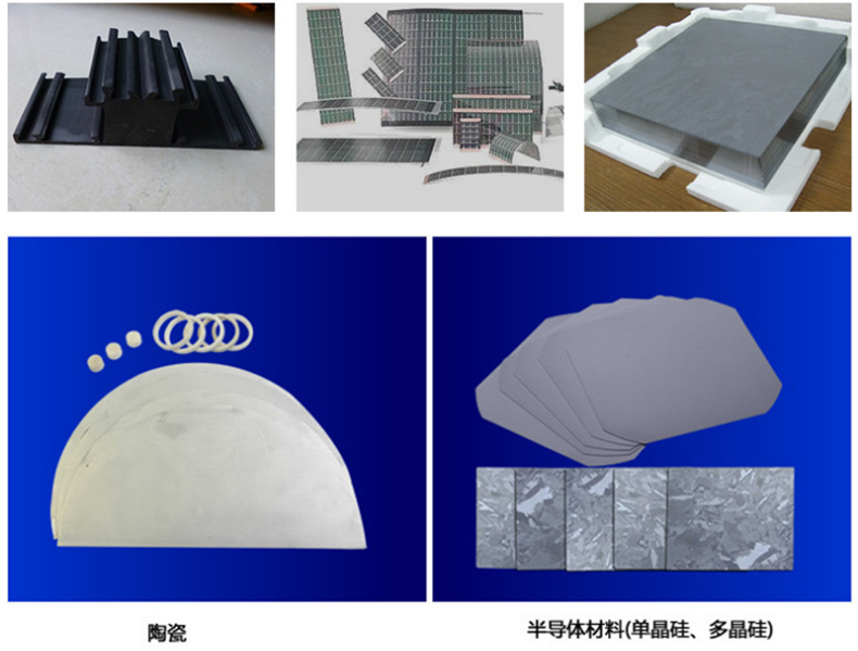本加工方法是對(duì)電火花切割機(jī)床難以加工的不導(dǎo)電材料的補(bǔ)充。原則上對(duì)導(dǎo)電和不材料只要硬度比砂線小均可加工,對(duì)用電火花線切割機(jī)床加工難以加工的石墨材料,采用本產(chǎn)品加工尤能顯示其無比的優(yōu)越性;對(duì)脆性材料如注塑泡沫材料、復(fù)合材料、陶瓷、環(huán)氧板、鐵氧板、半導(dǎo)體材料、碳化硅、耐火磚、非導(dǎo)電材料等具有一定脆性材料的成型切割均可加工。